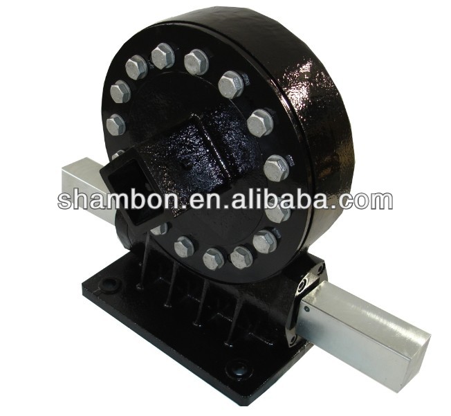 回轉驅動:采用回轉支承和環面包絡蝸桿結構,能達到多齒嚙合,具有傳動扭矩大,運行平穩等特點;以回轉支承為主體,同時可以承受較大